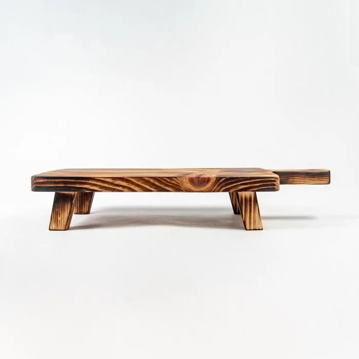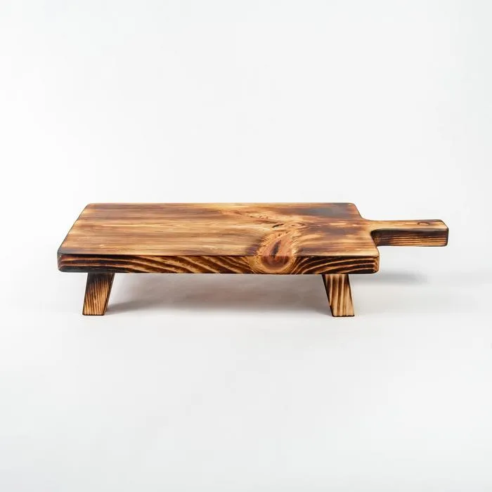 Эта разделочная доска станет незаменимой помощницей на вашей кухне. Деревянная доска для сервировки из обожженного кедра привнесет теплоту и уют. Доска с ножками – это практичное и стильное решение для подачи закусок, сыров, колбас и других блюд.