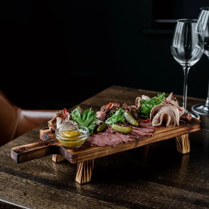 - Наличие ножек: Приподнимает доску над столом, делая сервировку более эффектной.