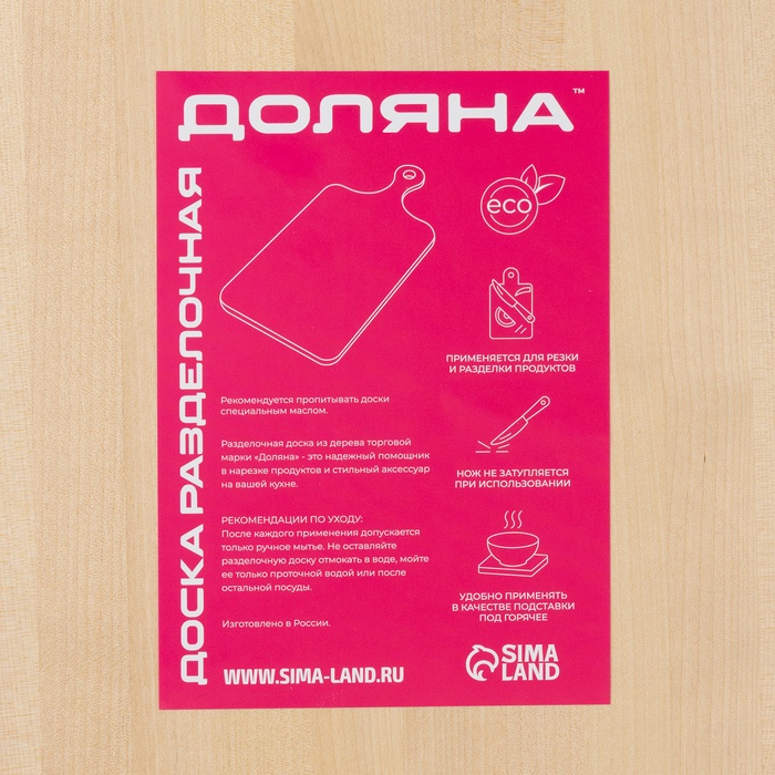 Доска разделочная деревянная Доляна, 35×22×1.2 см, берёза — Характеристики