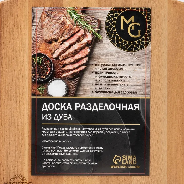 Доска разделочная деревянная с ручкой Magistro, 40×24×1,2 см, дуб — Характеристики