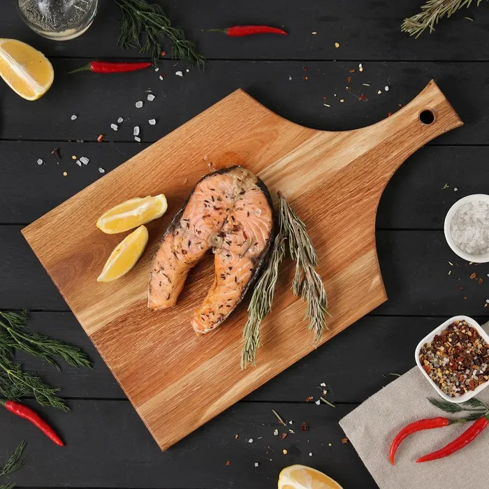 - Предупреждайте возникновение бактерий. Доску необходимо периодически протирать раствором уксуса или чистого лимонного сока. Особенно это важно после нарезания сырого мяса, рыбы и сильно пахнущих продуктов.
