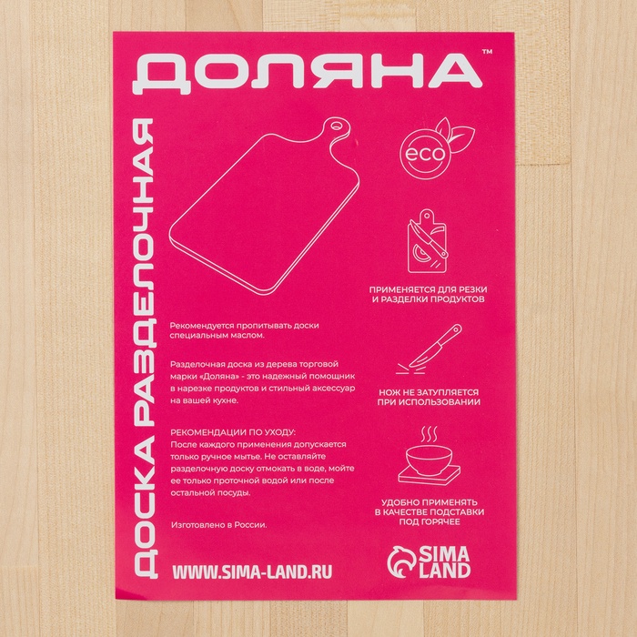 Доска разделочная Доляна, 60×30×2 см, дерево берёза — Характеристики