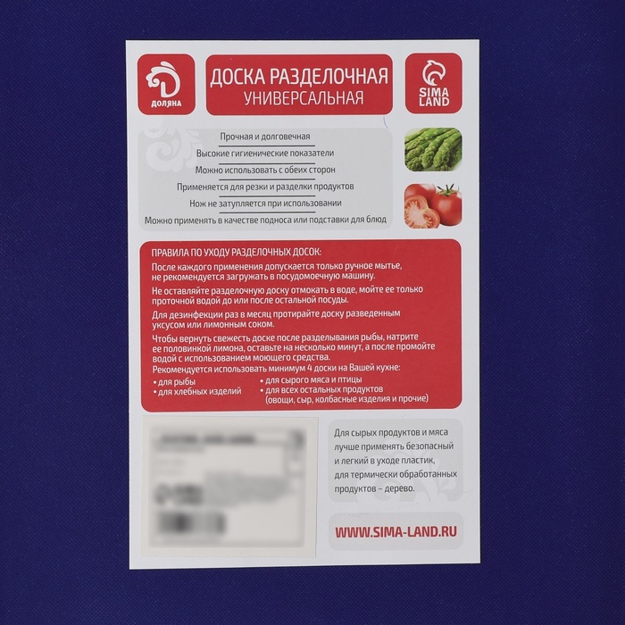 Доска разделочная Доляна «Хозяюшка», прямоугольная, 28×18 см, пластик, синяя — Характеристики