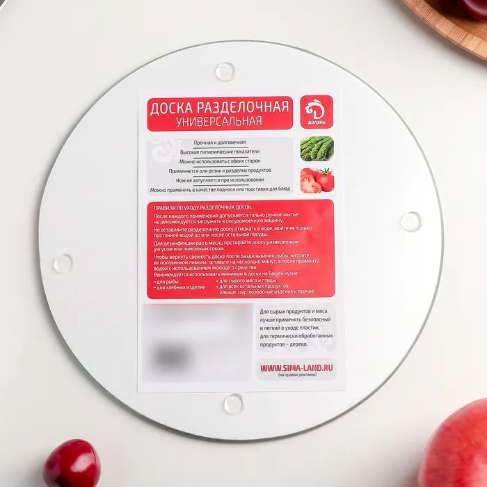 Стеклянная разделочная доска — это практичный аксессуар для нарезки продуктов, стильное украшение кухни и эффектная подставка для блюд. Стеклянная поверхность нейтрально относится к посторонним ароматам. Она не впитывает запахи и не поглощает влагу. Уход за изделием прост — достаточно промыть его под теплой водой и насухо вытереть салфеткой.