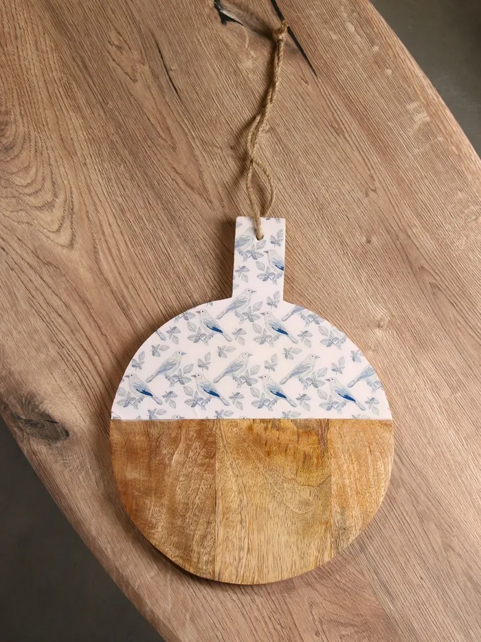 Доска разделочная круглая «Синие птицы», 36×28 см, дерево манго — Характеристики