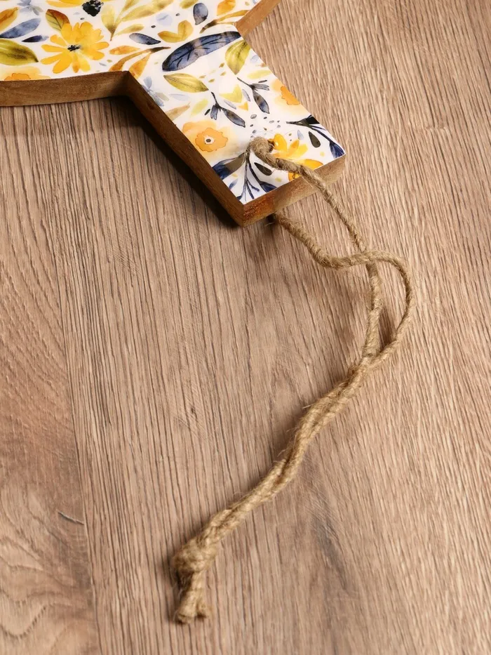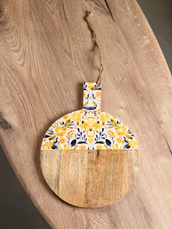 Доска разделочная круглая «Желтые и синие цветы», 36×28 см, дерево манго — Характеристики