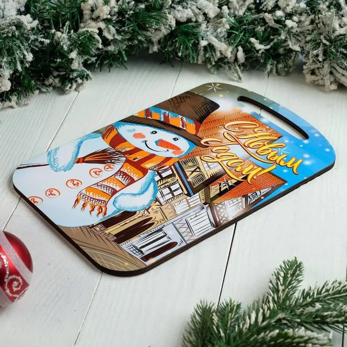 Доска разделочная "Новогодняя. С Новым годом! Весёлый снеговичок» цветная, 27х18 см — Характеристики