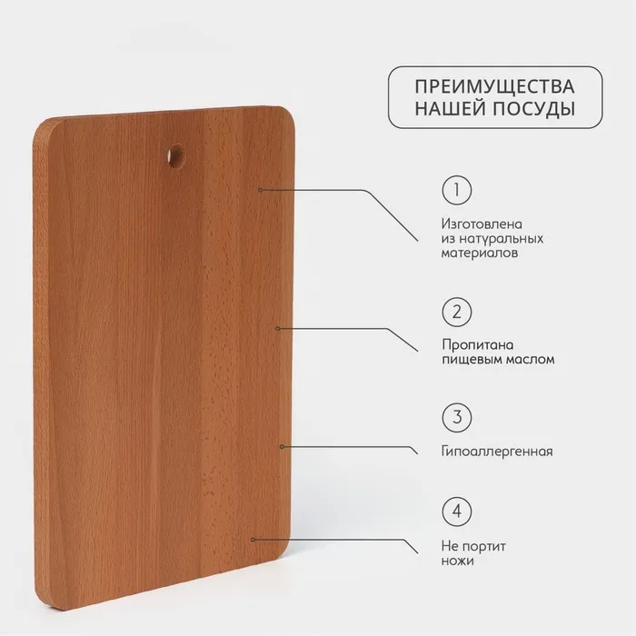 Доска разделочная Премиум «Прямоугольная», 35×24,5×1,8 см, бук — Характеристики
