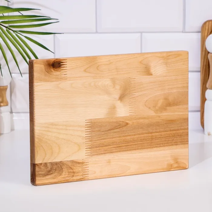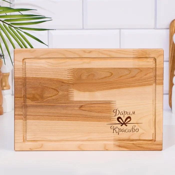 Деревянная разделочная доска — это классика, актуальная во все времена. Она не боится воды и имеет длительный срок службы. Подходит для мяса и овощей: продукты на ней не скользят, что значительно облегчает нарезку и обеспечивает безопасность повару. Также изделие почти не тупит ножи.