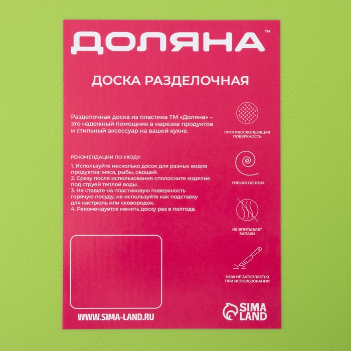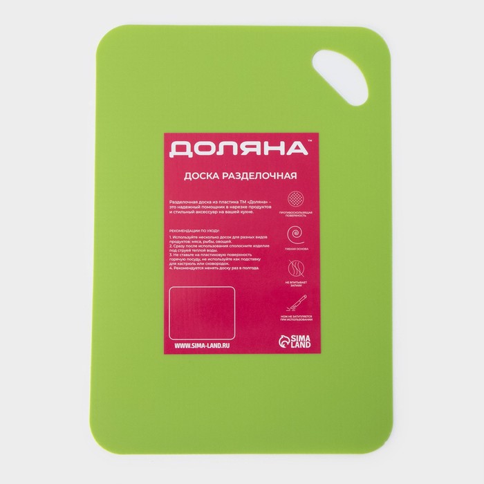 Доска разделочная противоскользящая гибкая Доляна, 33×23 см, цвет зелёный — Характеристики