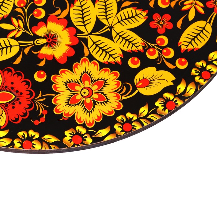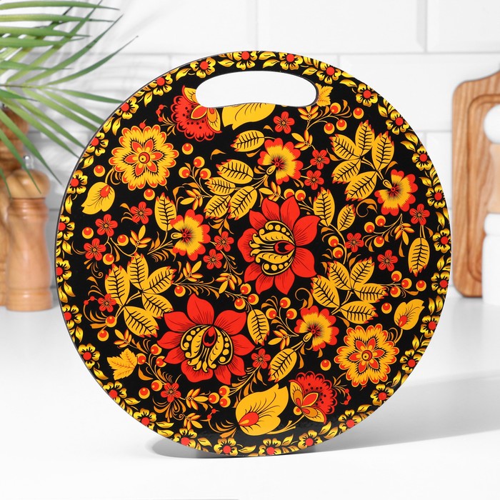 Привнесите в ваш дом атмосферу русской народной культуры с нашей сувенирной разделочной доской «Хохлома»! Эта круглая деревянная доска диаметром 25.5 см с узнаваемой хохломской росписью станет прекрасным украшением кухни или оригинальным подарком.