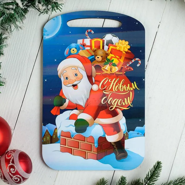 Доска разделочная сувенирная Дарим Красиво «С Новым годом! Мишка на лыжах», дерево, разноцветная — Характеристики