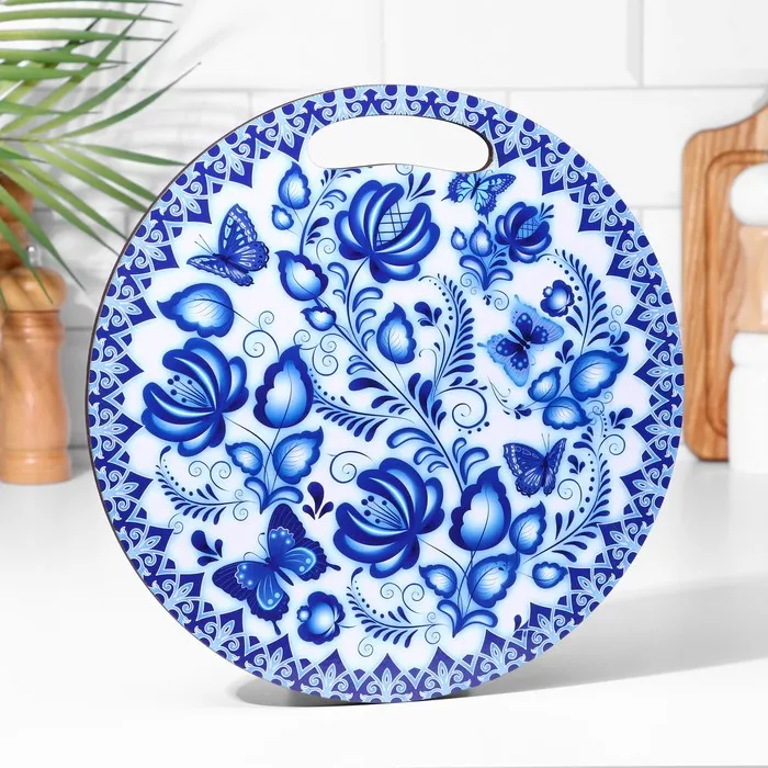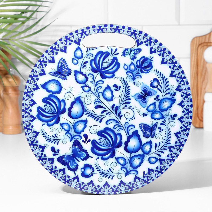 Доска разделочная сувенирная «Гжельская роспись», 25,5 см, круглая — Характеристики