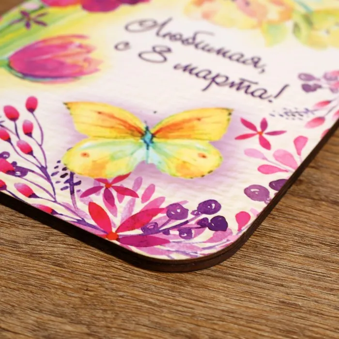 Доска разделочная сувенирная «Любимая, с 8 марта! Цветы», 27×18 см — Характеристики