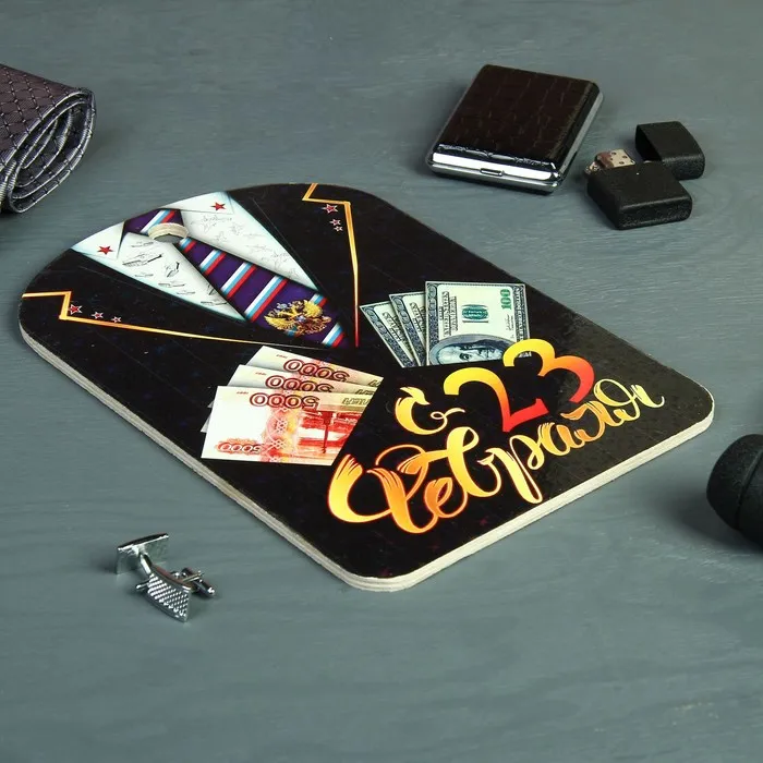 Доска разделочная сувенирная «С 23 февраля. Деньги», 19,5×27,5 см — Характеристики