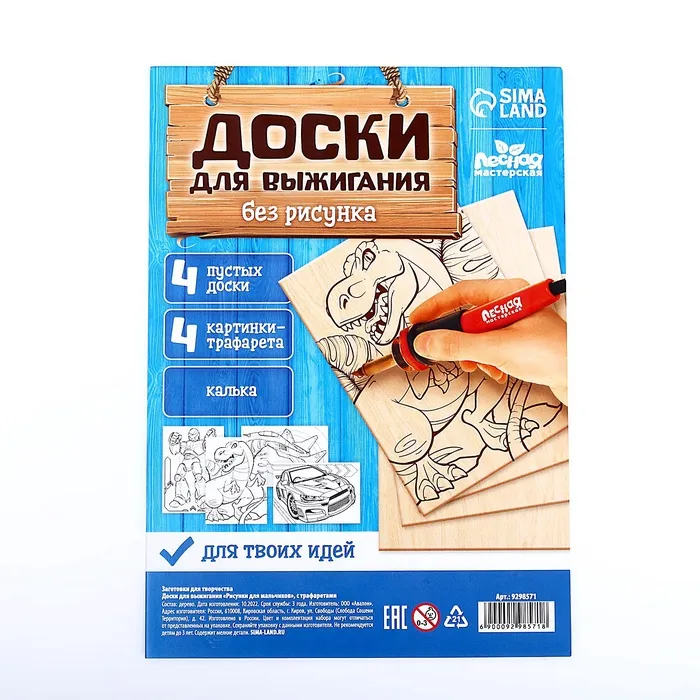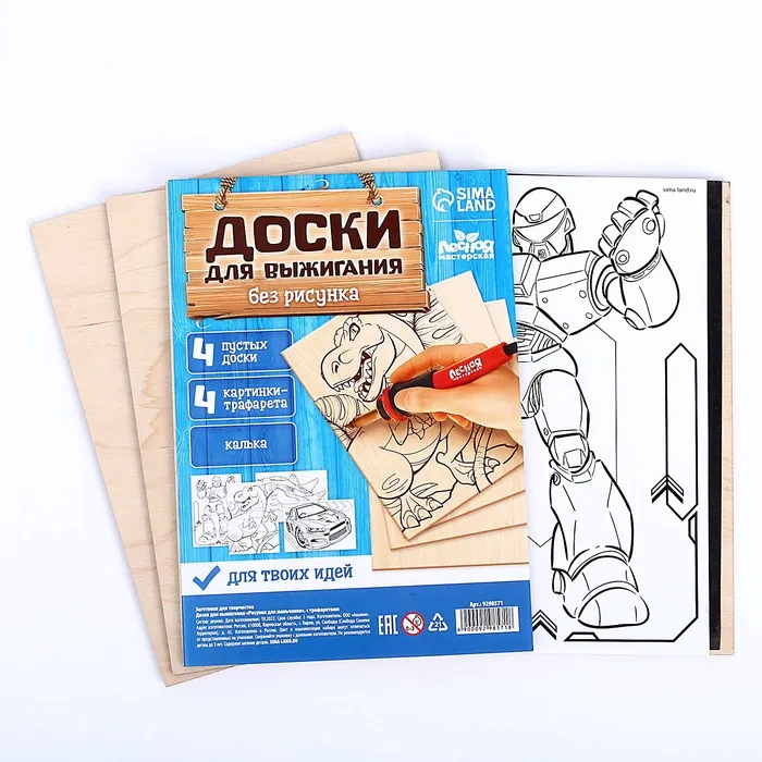 Выжигание по дереву — это популярное направление декоративно-прикладного искусства. Набор досок для творчества станет отличным подарком для детей, способствующим развитию творческих навыков и интересному времяпрепровождению.