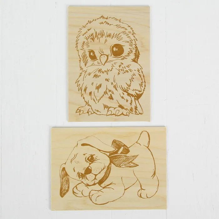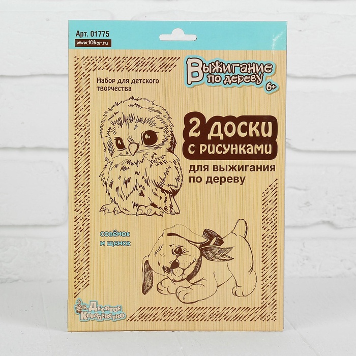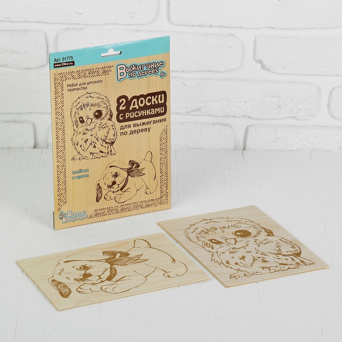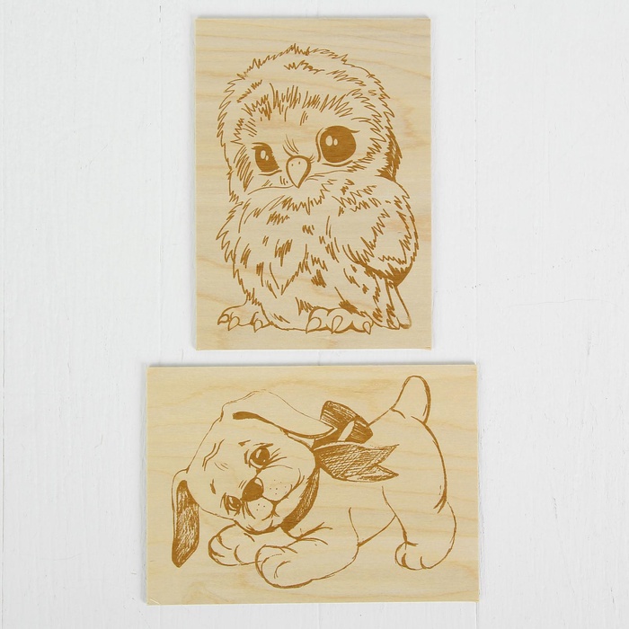 - Набор состоит из 2 досок, на одной из них изображён милый совёнок, а на другой щенок.