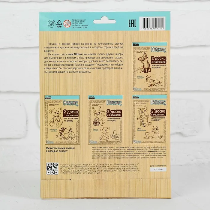 - Рисунки нанесены на доски специальной краской, не выделяющей в процессе выжигания вредных веществ.