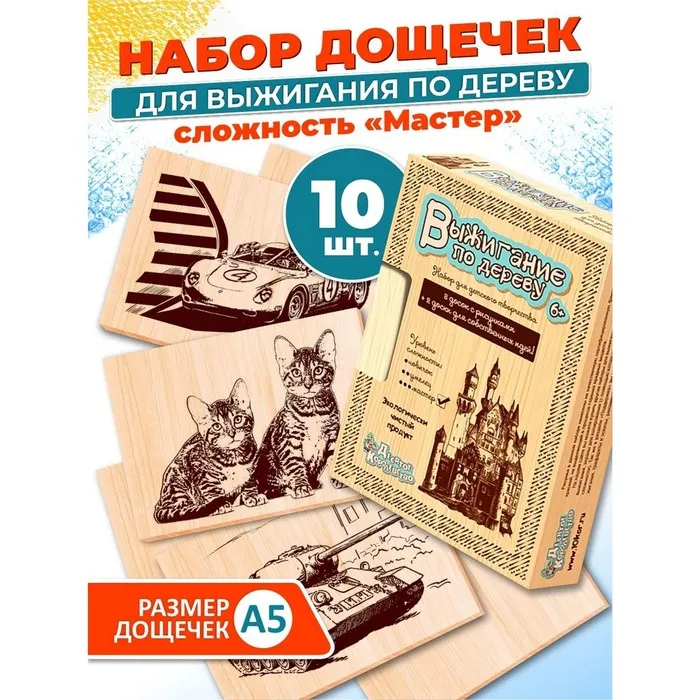 - На досках изображены сложные рисунки, поэтому набор подойдёт для тех, кто уже хорошо умеет выжигать по дереву.