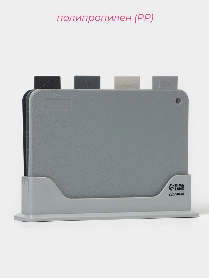Доски разделочные Доляна, набор 4 шт., на подставке, пластик, 33×8×24 см, серые — Характеристики