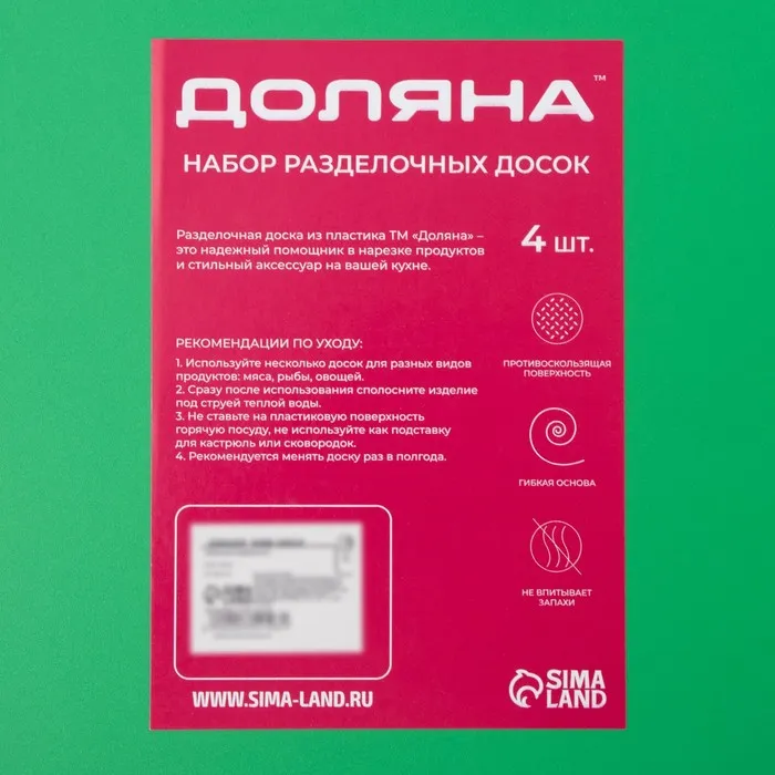 Доски разделочные гибкие Доляна, 38×28 см, набор 4 шт., разноцветные — Характеристики