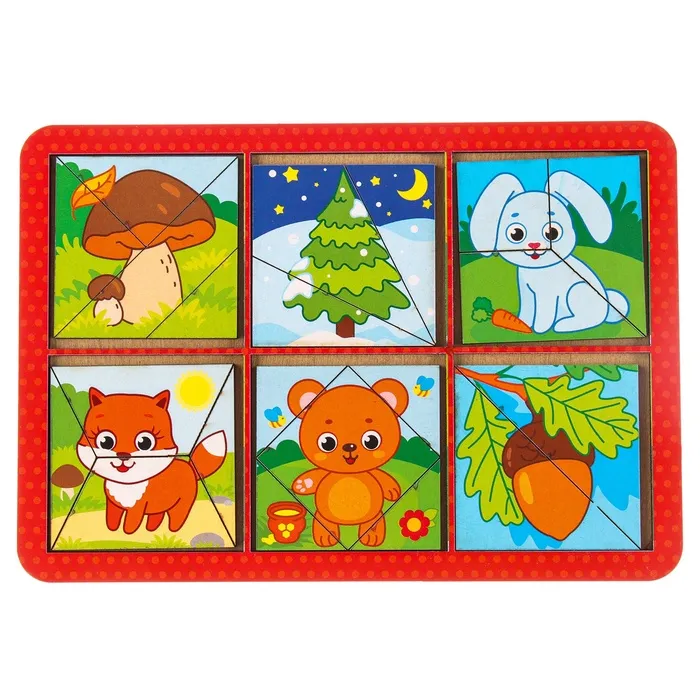 Головоломка геометрическая деревянная «Животные», двусторонние