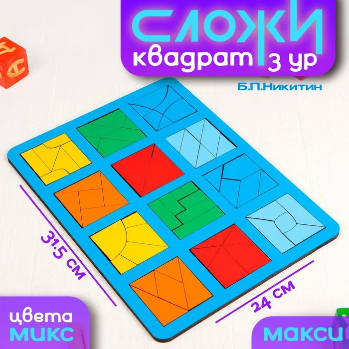 Настольная игра «Сложи квадрат» Б.П.Никитин, 3 уровень, ячейка 6×6 см, МИКС