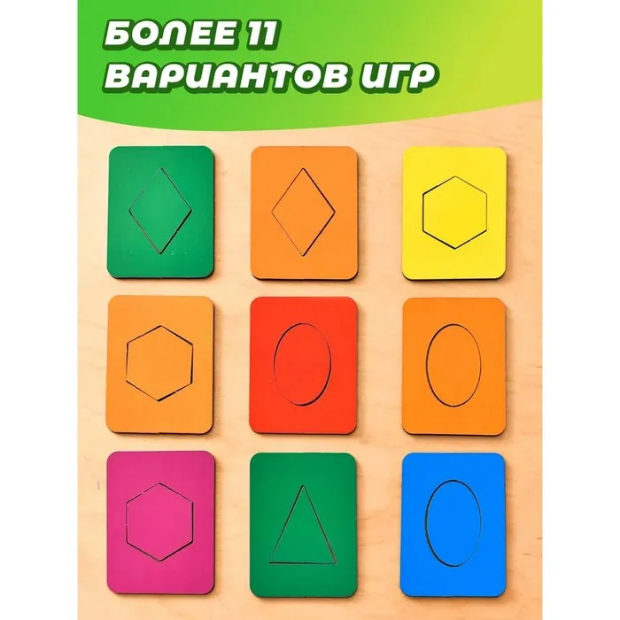 В наборе 18 дощечек с отверстиями, в которые кроха будет вставлять недостающие детали.