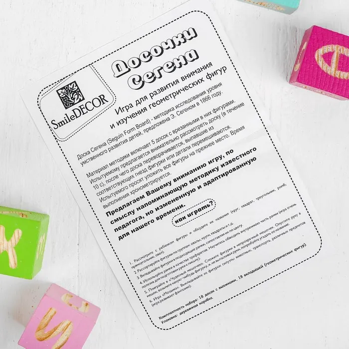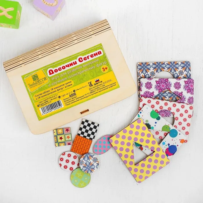 Игрушка сделана по методике французского врача и педагога Эдуарда Сегена, которая побуждает ребёнка к самостоятельному изучению предметов и их взаимодействия.