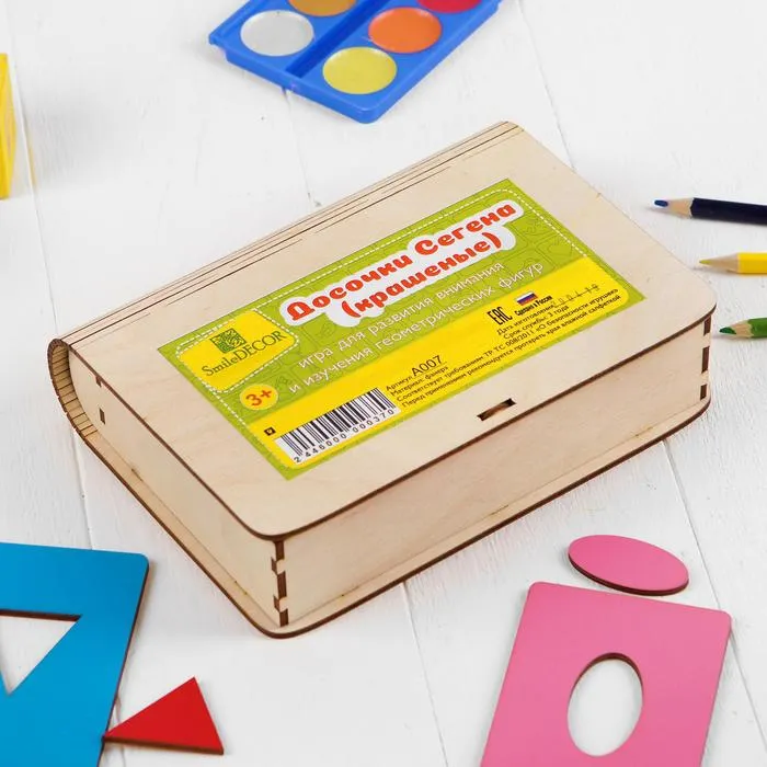 Игрушка сделана по методике французского врача и педагога Эдуарда Сегена, которая побуждает ребёнка к самостоятельному изучению предметов и их взаимодействия.