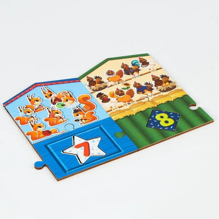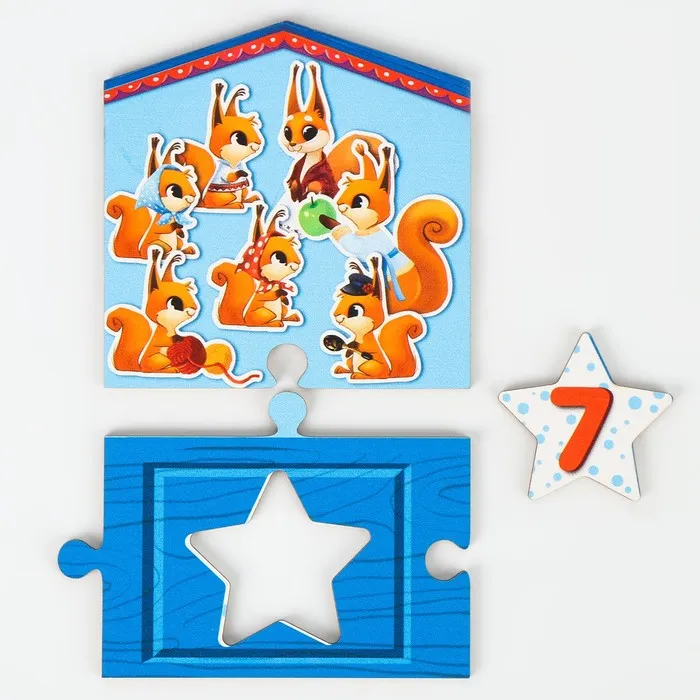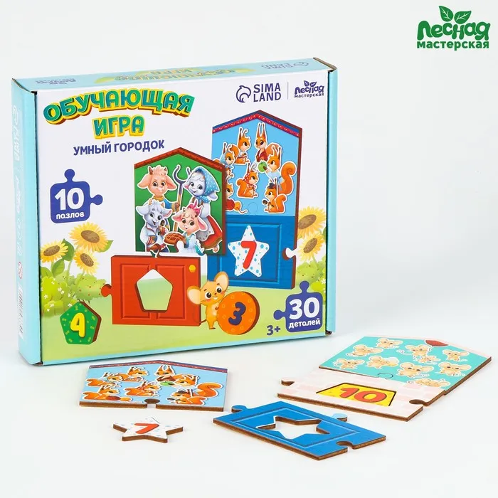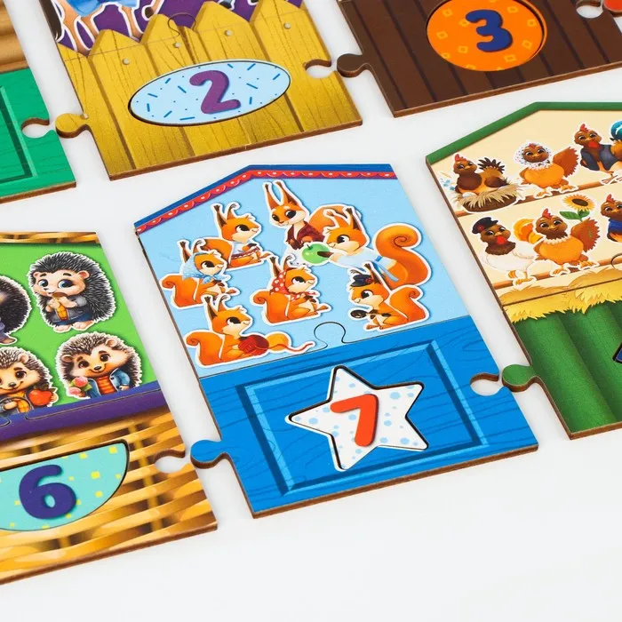 30 деталейПазл поможет ребёнку научиться считать предметы и запомнить цифрыС помощью такой игрушки ребёнок научится различать различные формы и цветаТакие игры совершенствуют моторику, логическое и пространственное мышление, дают стимул для развития речи, тренируют навык самостоятельной работы, помогают развивать зрительное восприятие, тактильные функции и зрительную координацию.
