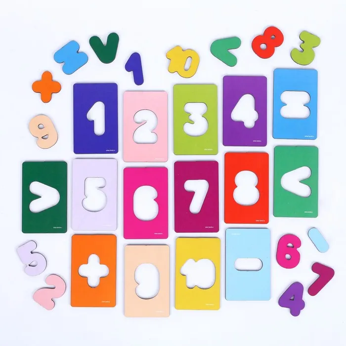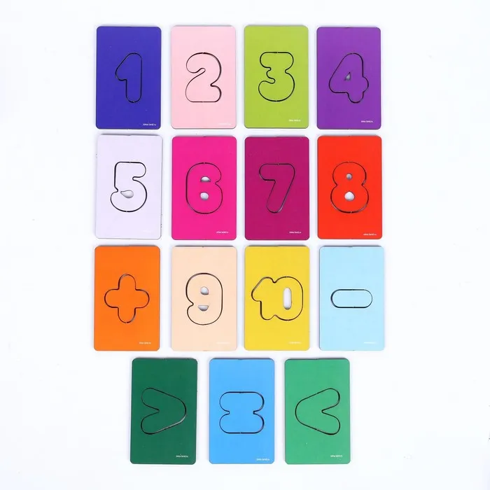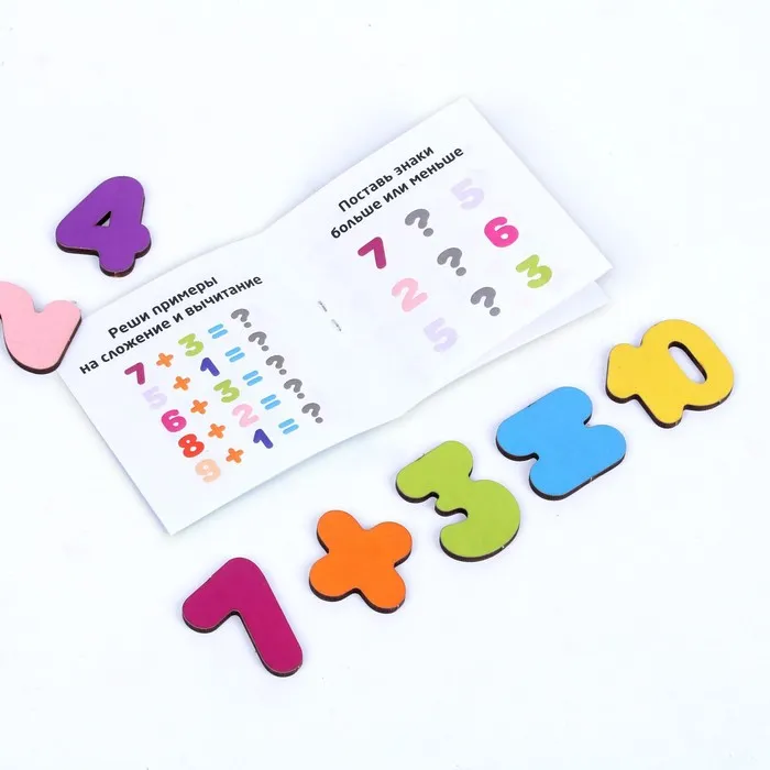 - Детали отличаются по цвету и форме, поэтому подходят для знакомства с названиями цветов и цифрами. Вы можете составлять простые примеры с помощью цифр и знаков из набора.