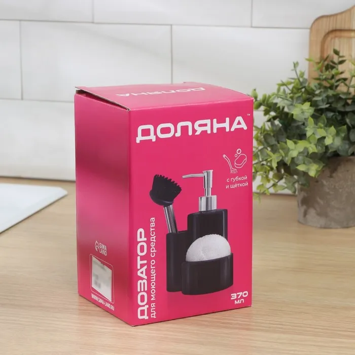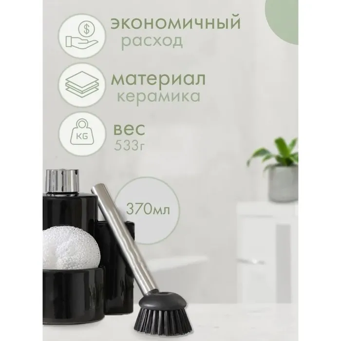 Дозатор для моющего средства Доляна «Милитари», 370 мл, с губкой и щёткой, чёрный — Характеристики