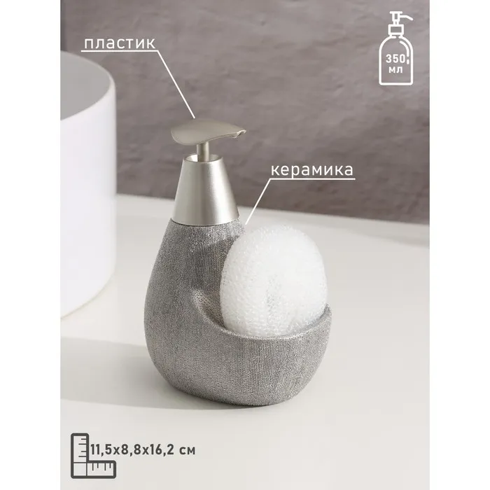 Дозатор для моющего средства с подставкой для губки Доляна «Африка, 350 мл, серый — Характеристики