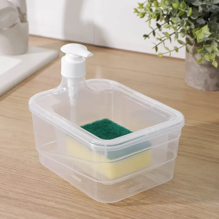 Дозатор для моющего средства с подставкой для губки Доляна, губка в комплекте, 600 мл, 17×13×14 см — Характеристики