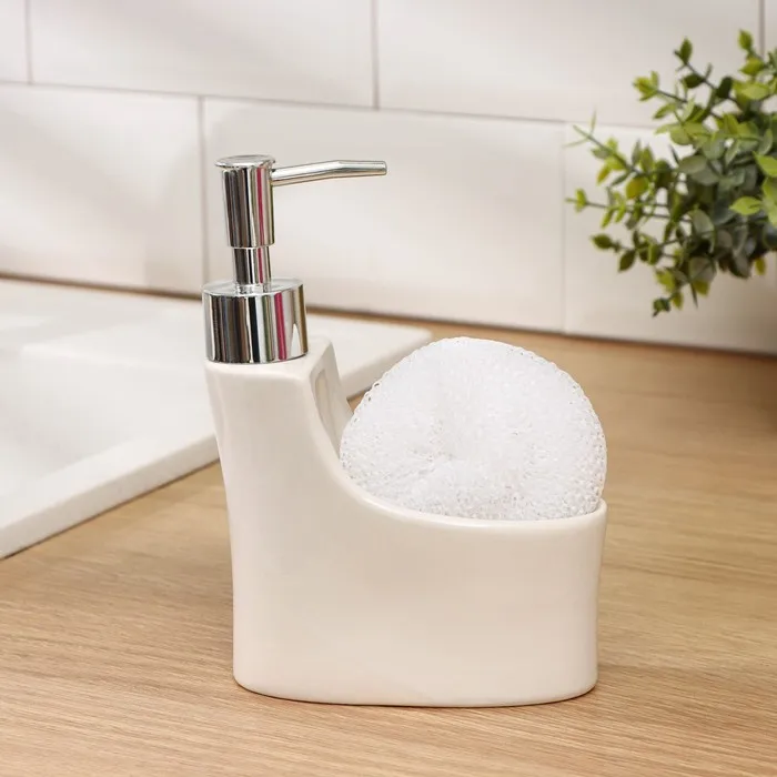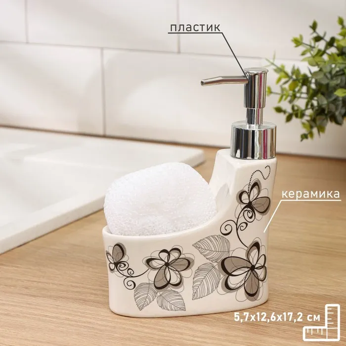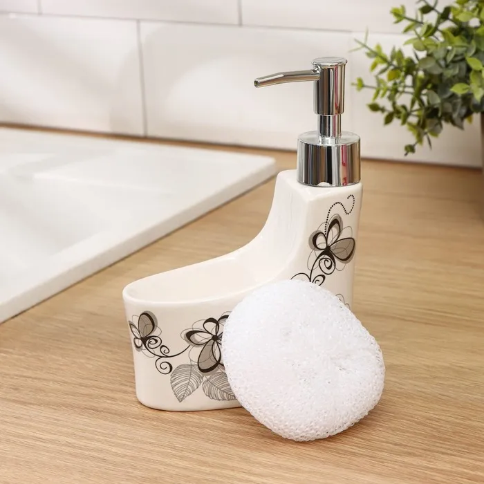Декорированные прелестным орнаментом, изделия украсят знакомую обстановку и создадут позитивное настроение. Хозяйкам непременно понравится специальное отделение для комфортного хранения губки непосредственно в дозаторе.