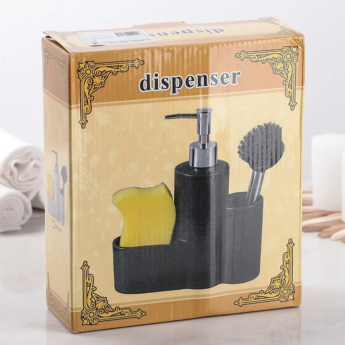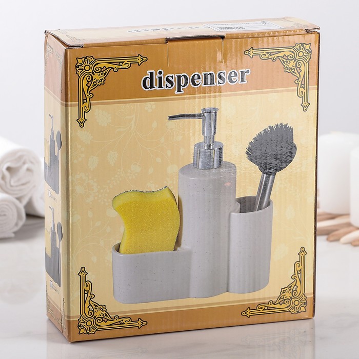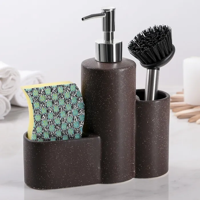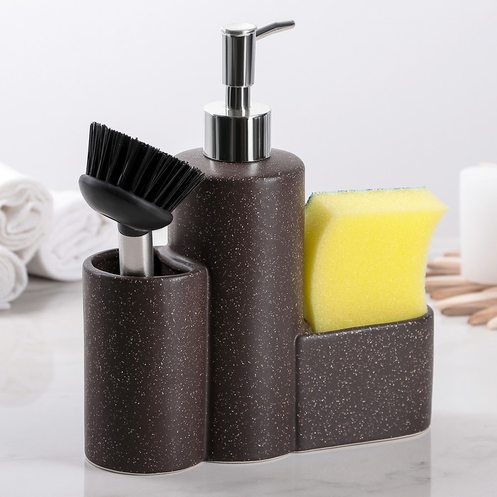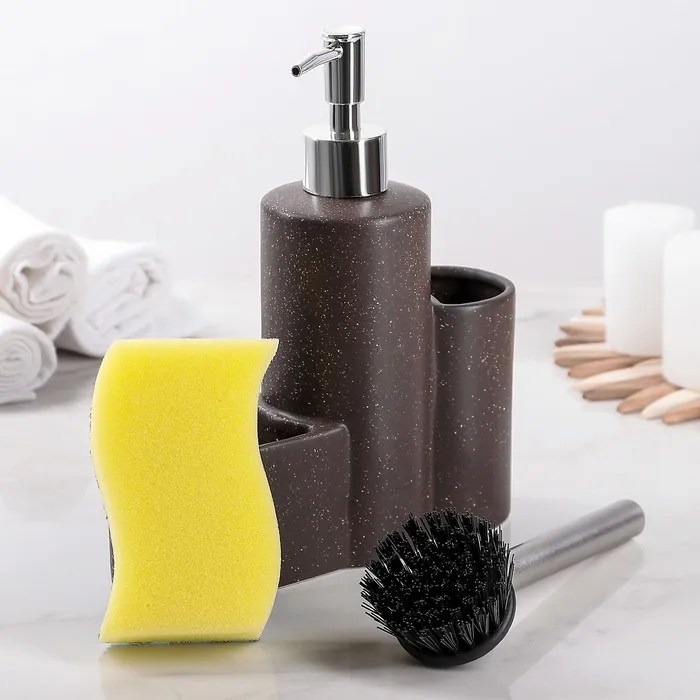 Дозатор для моющего средства с подставкой для губки и щётки «Минимал», 350 мл, цвет светло-коричневый — Характеристики