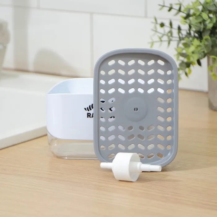 С помощью дозатора для моющего средства торговой марки Racoon вы без труда справитесь с грязной посудой.