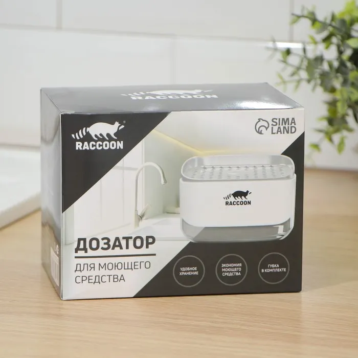 Дозатор для моющего средства с подставкой для губки Raccoon, губка в комплекте — Характеристики
