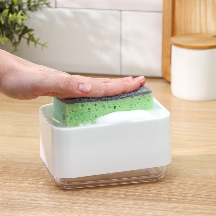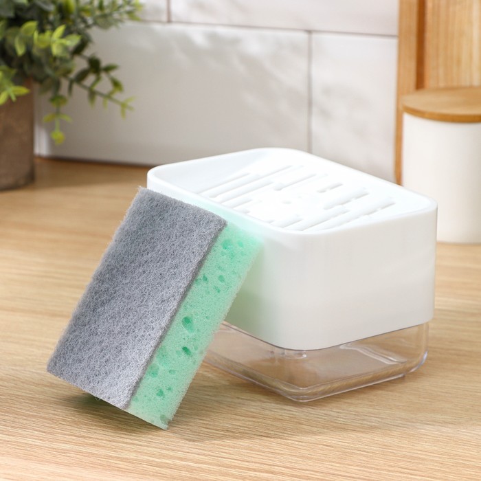 Дозатор для моющего средства с подставкой для губки Raccoon, губка в комплекте, цвет белый — Характеристики