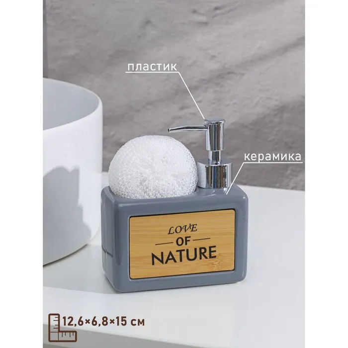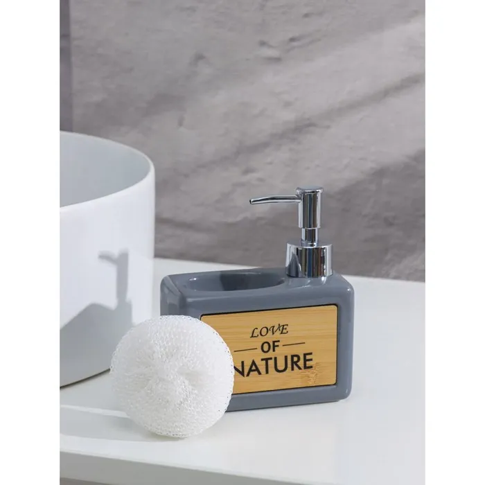 Дозатор для моющего средства с подставкой для губки SAVANNA «Природа», 450 мл, серый — Характеристики