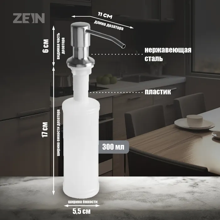 Дозатор для моющего средства ZEIN Z3615 — это встраиваемая модель, идеально подходящая для установки на мойку.