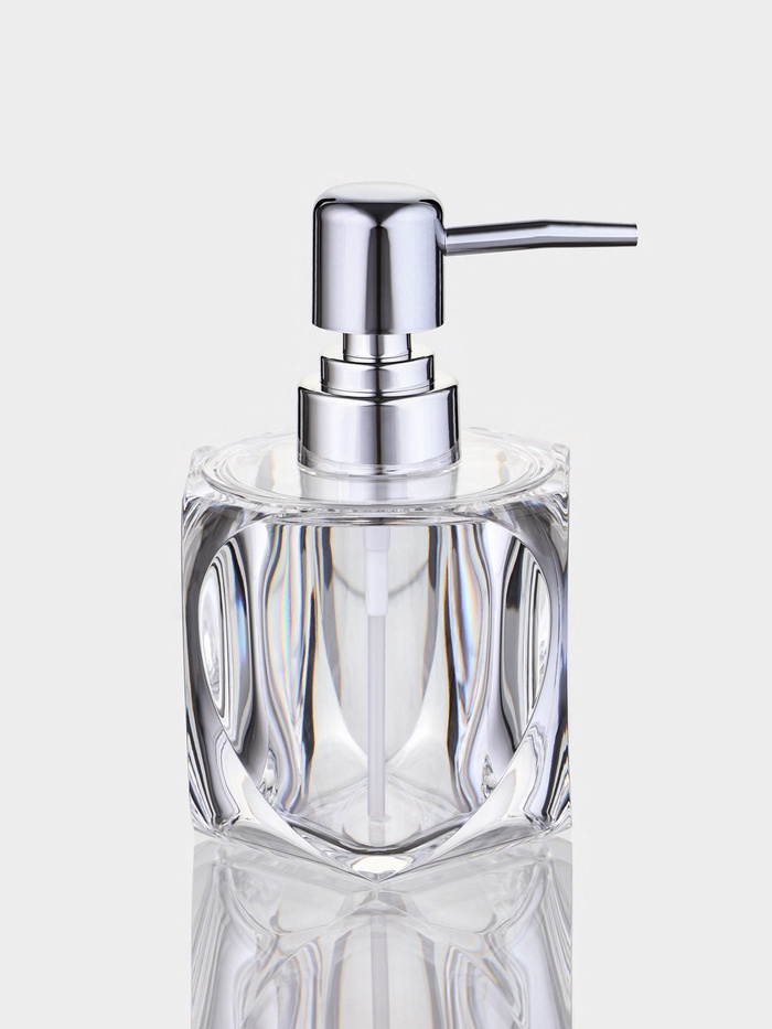 Этот дозатор не просто раздаёт мыло — он добавляет ванной комнате ощущение ”чистоты” и ”порядка” даже визуально. Прозрачный акрил позволяет видеть уровень жидкости, а гранёные грани делают его заметным, но не навязчивым элементом. Никаких лишних кнопок, никаких батареек — только простота и надёжность.