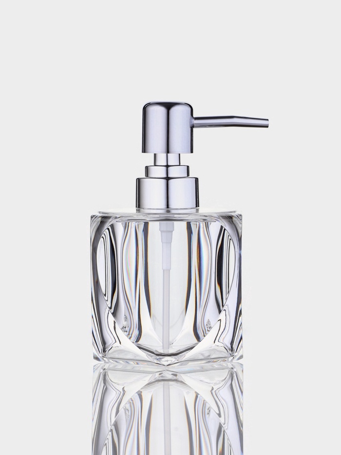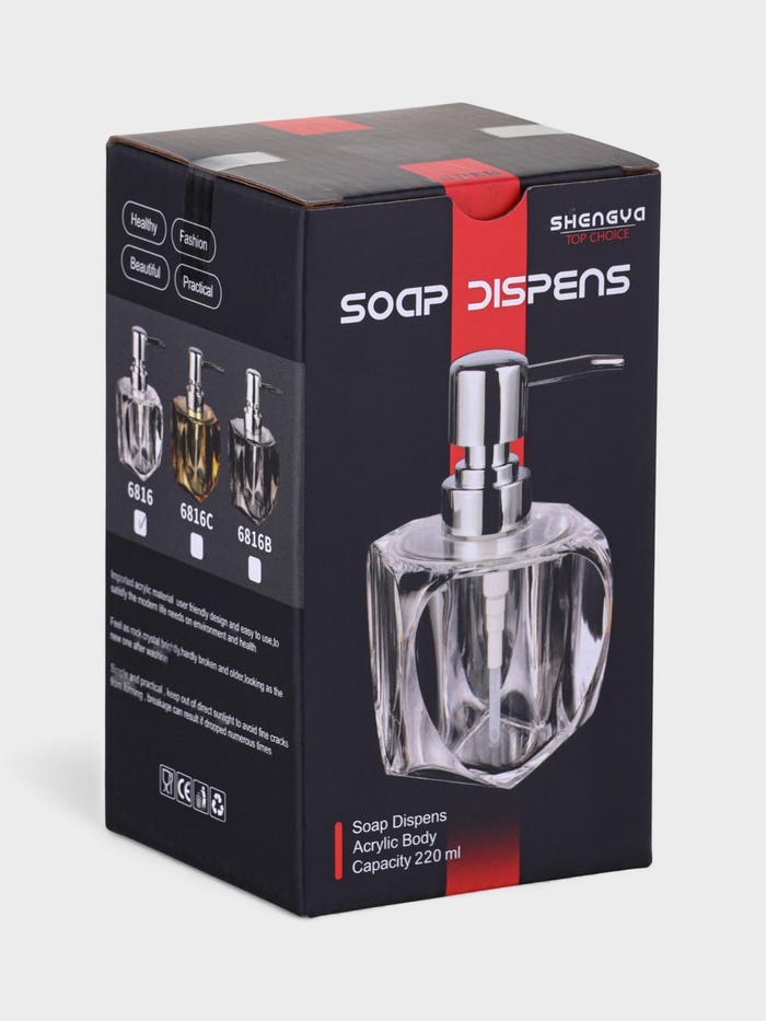Прозрачный дозатор для мыла «Хрусталь» — аксессуар, который работает как функциональный элемент и как деталь интерьера. Гранёная форма и чистый акрил создают эффект стеклянной посуды, но без хрупкости. Объём 220 мл подходит для ежедневного использования в ванной или на кухне — заправляется через верхнюю крышку, а дозирующий механизм срабатывает плавно и без залипаний.