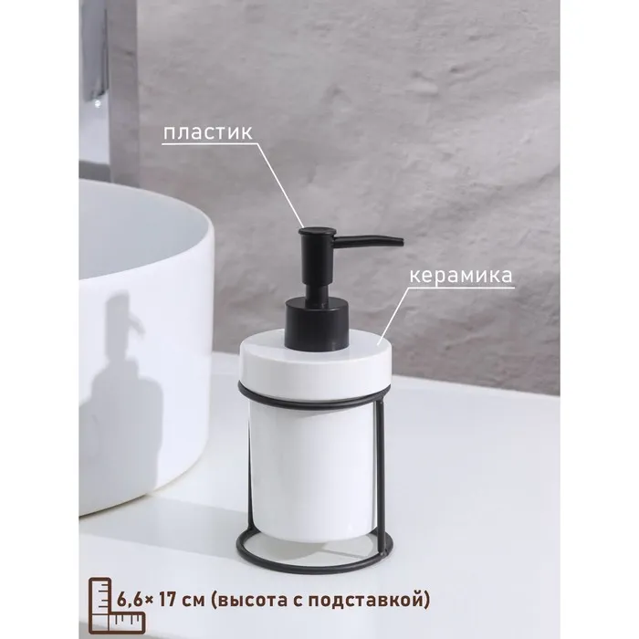 Дозатор для мыла на подставке SAVANNA «Геометрика», 250 мл, 16×7.8 см, белый — Характеристики