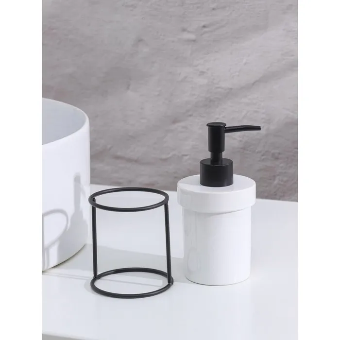 Добавьте стиль и элегантность в ваш интерьер с помощью дозатора для жидкого мыла на подставке в черно-белых тонах. Этот утонченный аксессуар станет не только практичным помощником в повседневной жизни, но и гармоничным дополнением любого пространства, создавая атмосферу современного дизайна.