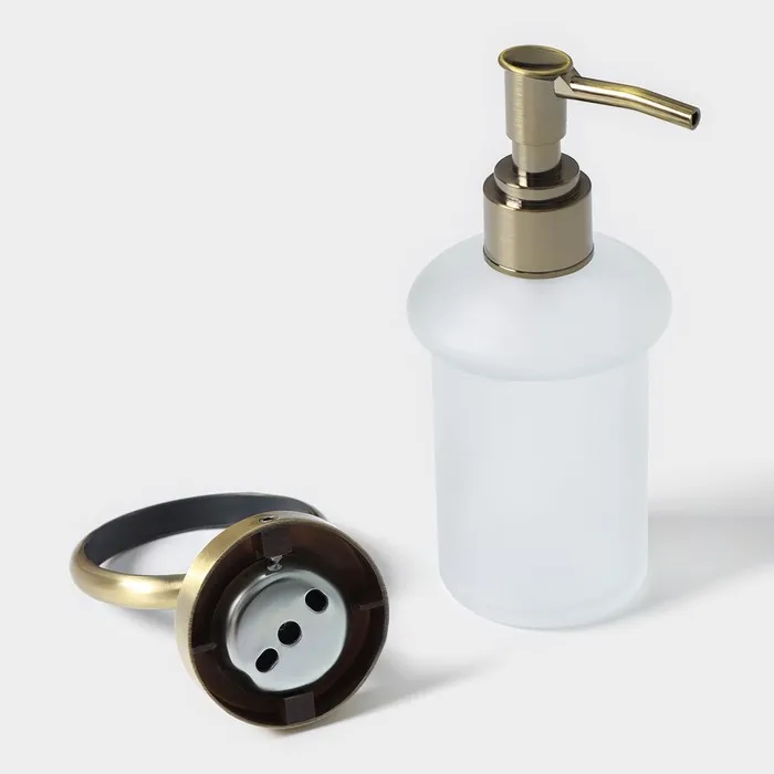 Откройте для себя изысканный аксессуар, который не только добавит элегантности в ваш интерьер, но и станет практичным решениям для удобного использования жидкого мыла. Дозатор с матовым стеклом и бронзовым держателем от Stölz bacic — это идеальное сочетание стиля и функциональности, которое гармонично впишется в любую ванную комнату или кухню.