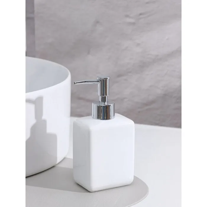 С ёмкостью в 350 мл и ручным механизмом управления, этот дозатор гарантирует быстрое и лёгкое дозирование мыла при каждой необходимости. Изготовленный из высококачественной керамики, он отличается прочностью и долговечностью, что делает его идеальным выбором для повседневного использования.