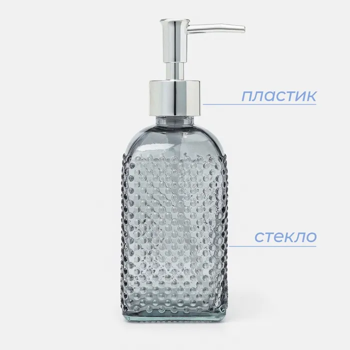 Дозатор для мыла SAVANNA «Пупырка», 400 мл, стеклянный, серый — Характеристики