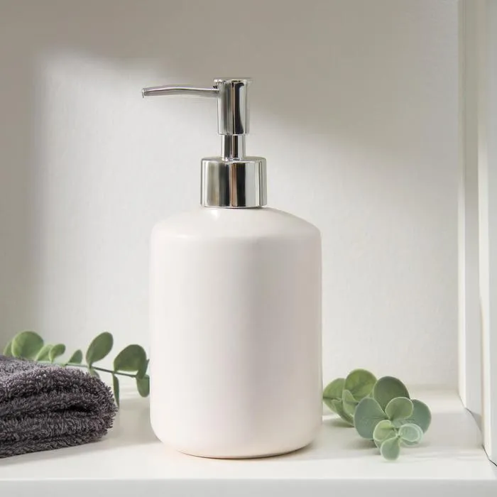 - Стильный дизайн: белый цвет и простота форм придают дозатору современный и минималистичный вид.